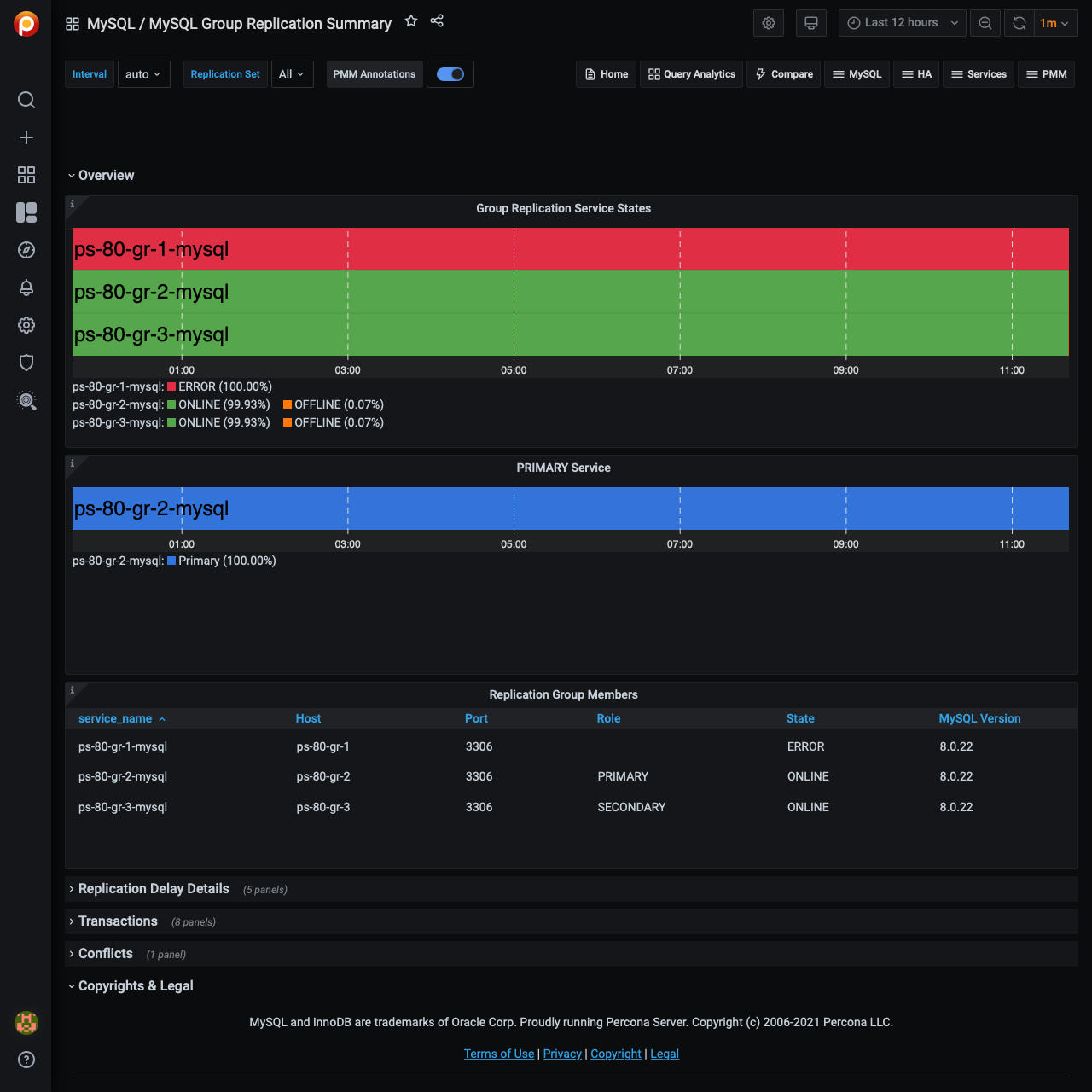 MySQL组复制摘要¶ 概述¶ 主要业务 组复制服务状态 复制组成员 复制延迟 复制延迟 运输时间 交易¶ 交易的细节 应用交易 发送交易 检查交易 回滚事务 事务行验证 等待检查队列中的事务 已接收事务队列 冲突¶ 检测到冲突 最近更新:2023-03-30