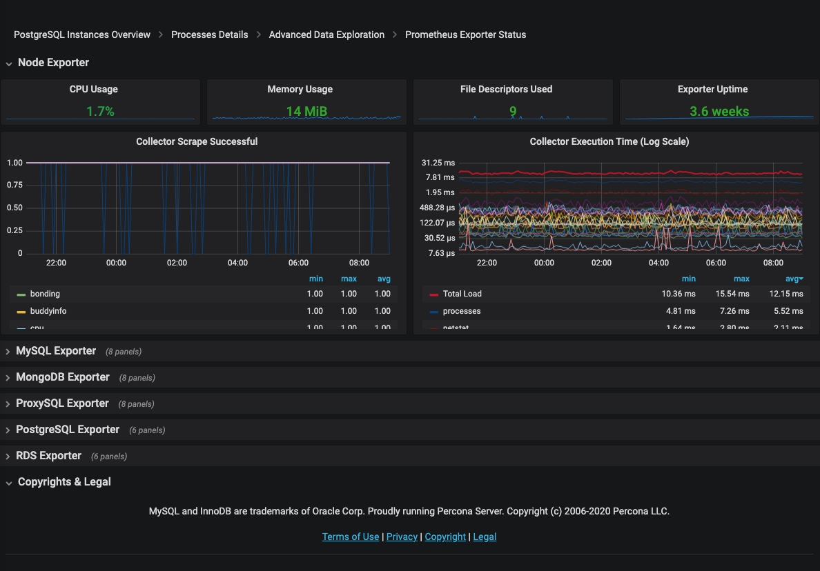 普罗米修斯出口商地位¶ Prometheus出口商状态仪表板报告PMM使用的Prometheus出口商所消耗的资源。对于每个出口商,此仪表板显示以下信息: CPU使用率 内存使用情况 使用的文件描述符 出口国正常运行时间 最近更新:2023-03-30