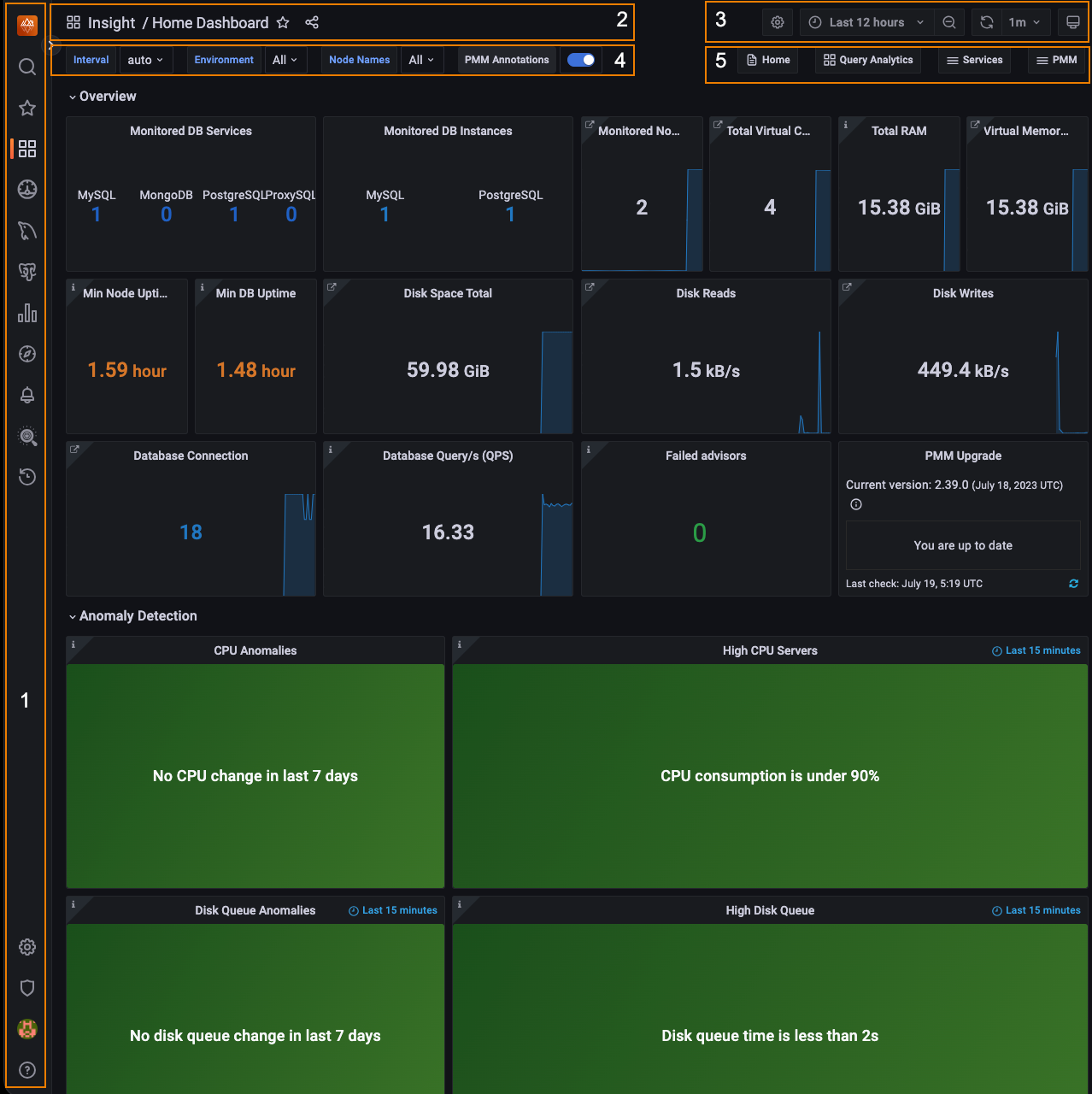 | 环境概述 | PMM连接到Percona Portal后显示此选项卡。雷竞技下载官网显示分配给组织的客户成功经理的名称和电子邮件,该经理可以帮助解决任何PMM查询。这个选项卡很快就会填充更多关于PMM环境的有用信息。 | |