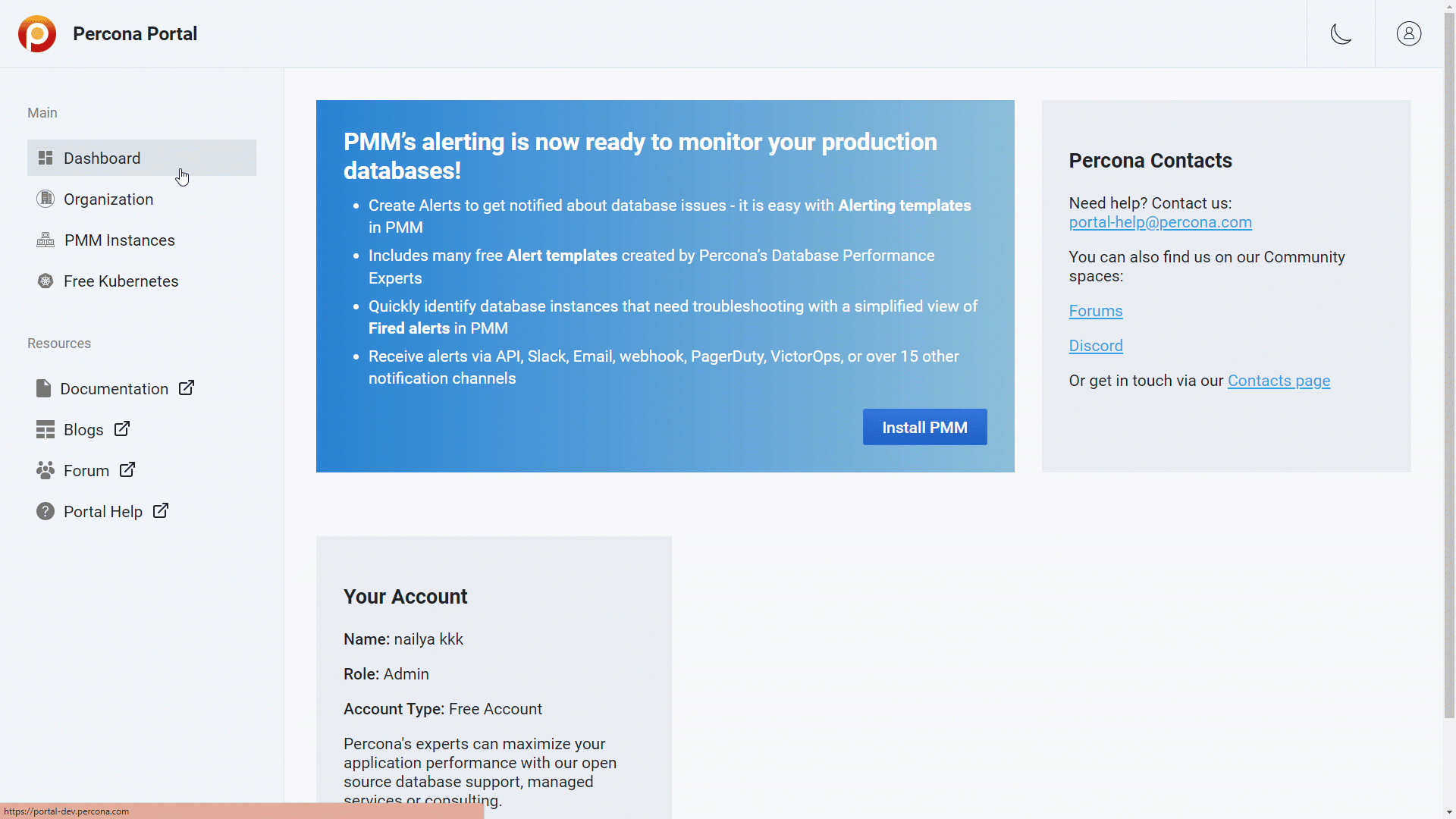 为确保您登录的组织与Percona客户帐户中的组织相对应,请确保使用与您的Percona客户帐户相同的电子邮件地址登录到Percona平台。雷竞技下载官网