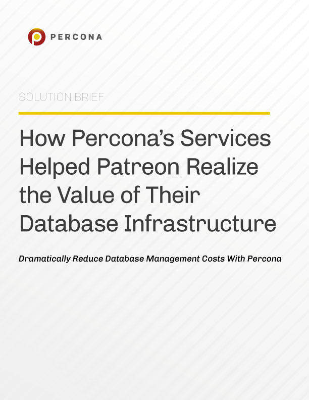 阅读我们最新的解决方案简介,了解如何从DBaaS模型转向依赖Percona的专业知识,使Patreon能够充分实现其数据库的价值。雷竞技下载官网